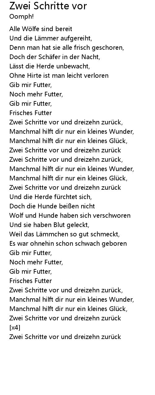 | Zwei Schritte vor und dreizehn zurü ck, | |