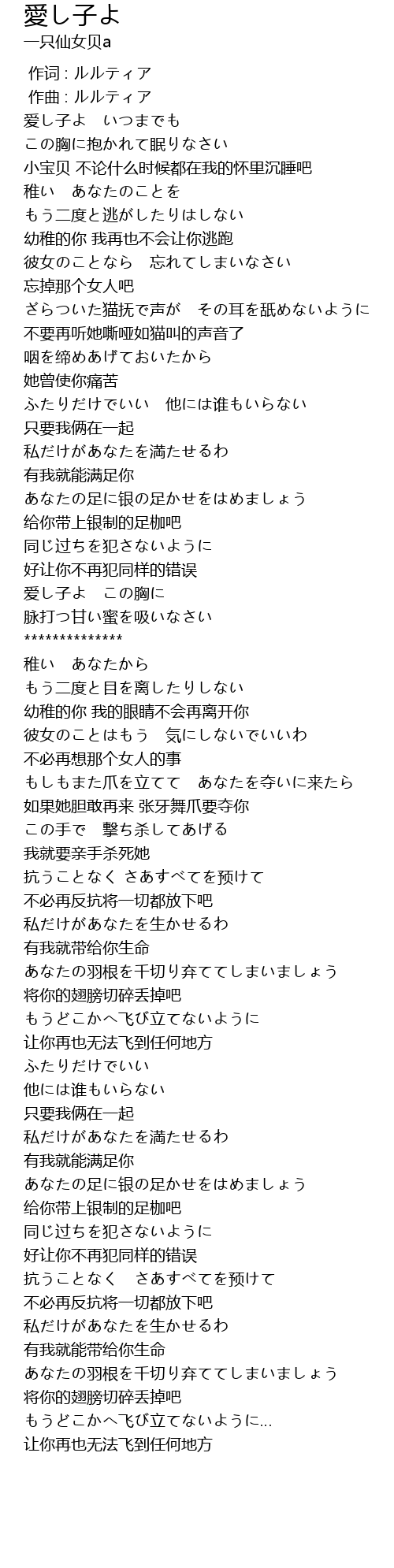 | [02:34.241] | あなたの羽根を千切り弃ててしまいましょう |