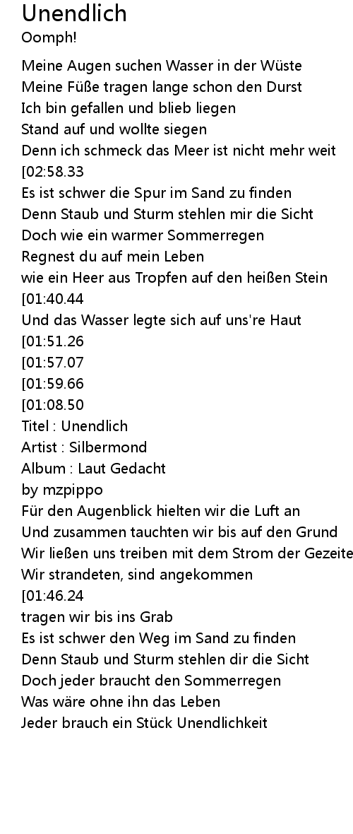 | [02:58.66][01:40.44][00:44.30] | Und wir war' n unendlich |