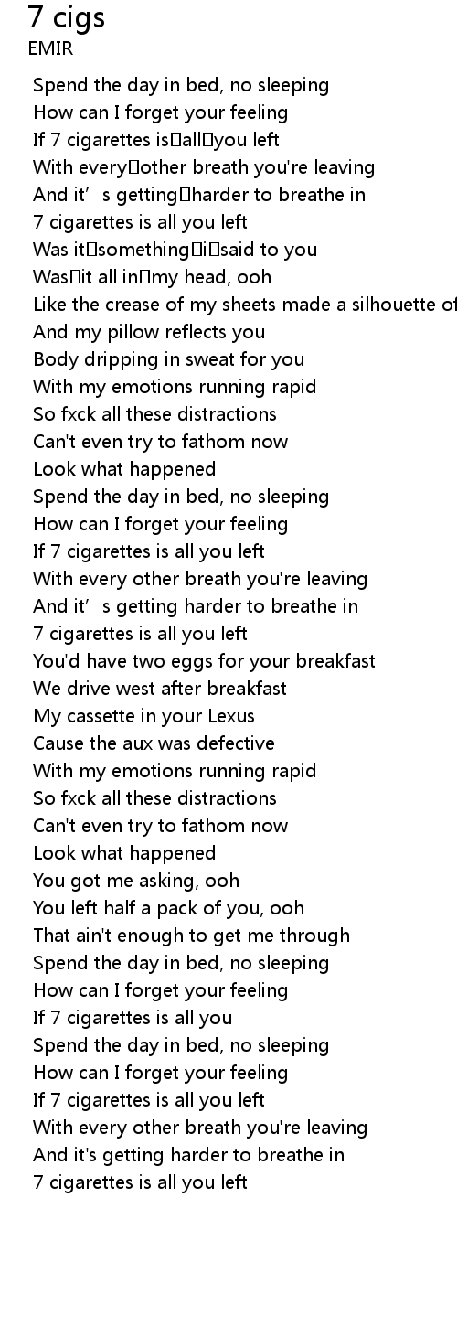 | [00:05.844] | If 7 cigarettes is all you left |