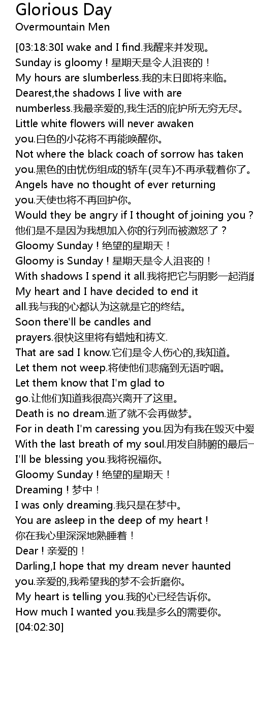 | [02:38:00] | Gloomy Sunday ! 绝望的星期天! |