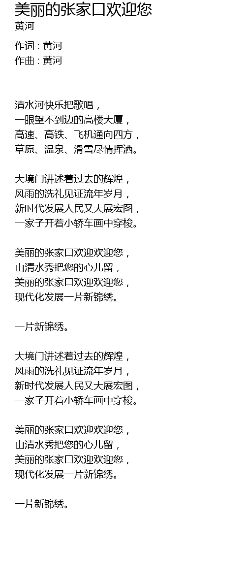 | měi lì de zhāng jiā kǒu huān yíng huān yíng nín, | |