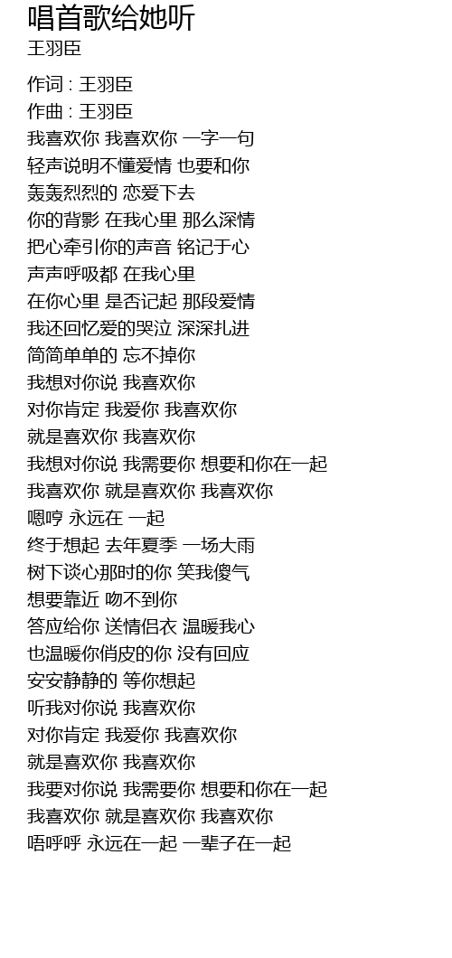 | wǒ xǐ huān nǐ wǒ xǐ huān nǐ yī zì yī jù | |