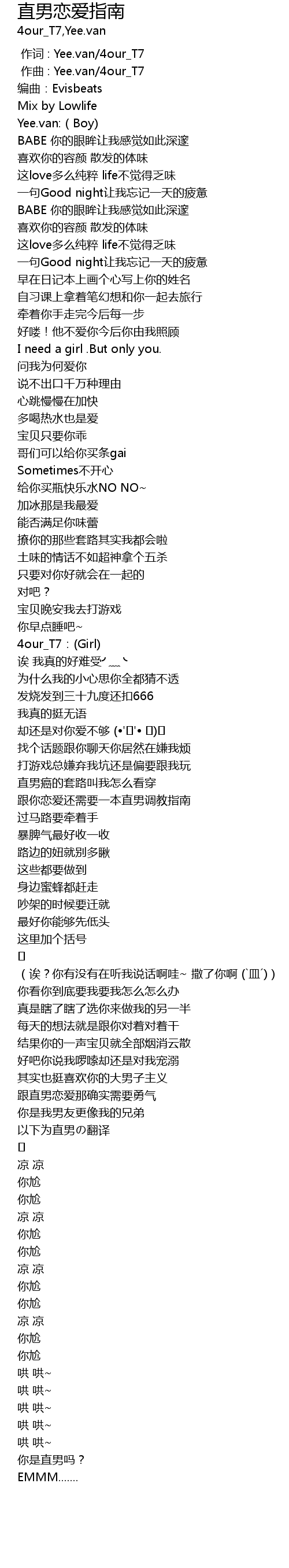 | [00:00.000] | 作词 : Yee.van/4our_T7 |