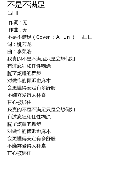 | [00:00.00] | 不是不满足(Cover :A -Lin )-吕口口 |