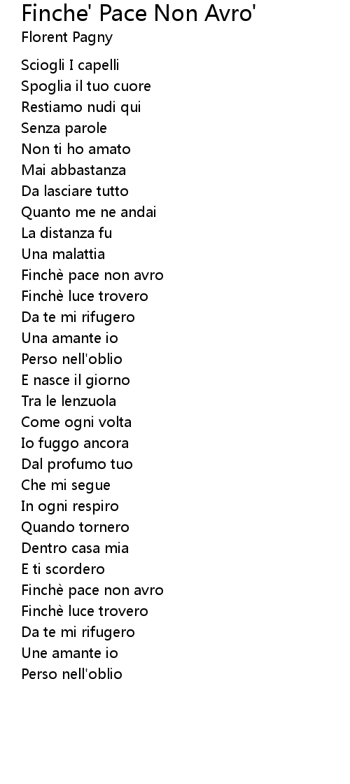 Finche' Pace Non Avro' Lyrics