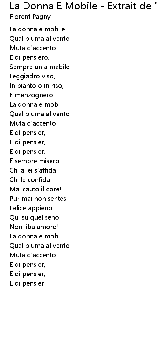 | Song | La Donna E Mobile - Extrait de "Rigoletto" De Verdi |