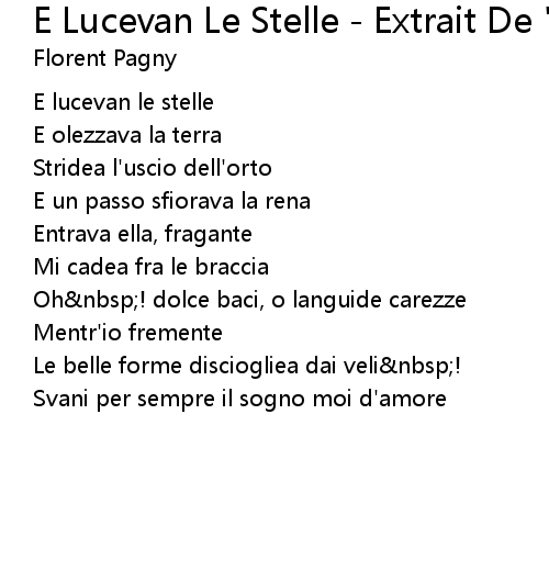 | Song | E Lucevan Le Stelle - Extrait De "La Tosca" De Puccini |
