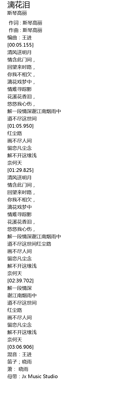 | [03:10.292] | 母带:Jx Music Studio |