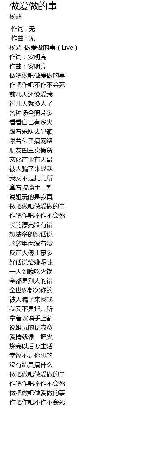 | [00:00.358] | 杨超-做爱做的事(Live) |
