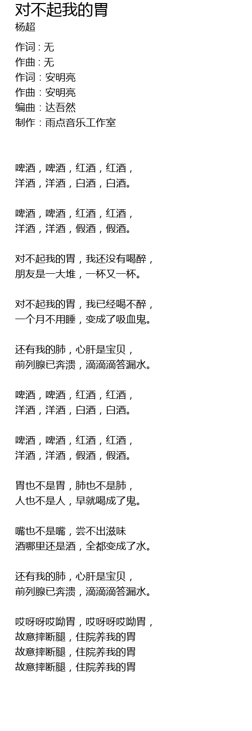 | 哎呀呀哎呦胃,哎呀呀哎呦胃, | |