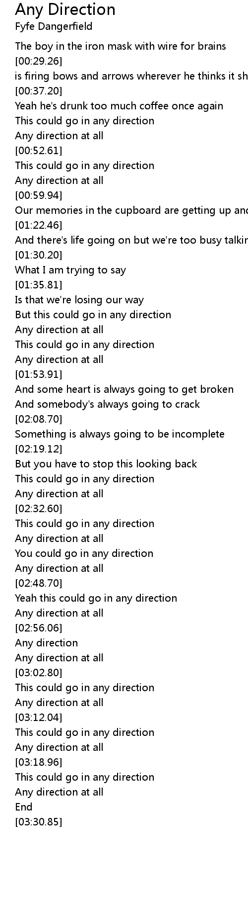 Any Direction Lyrics