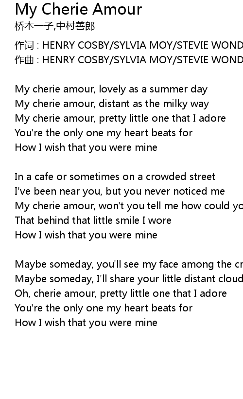 | 作词 : HENRY COSBY/SYLVIA MOY/STEVIE WONDER | |