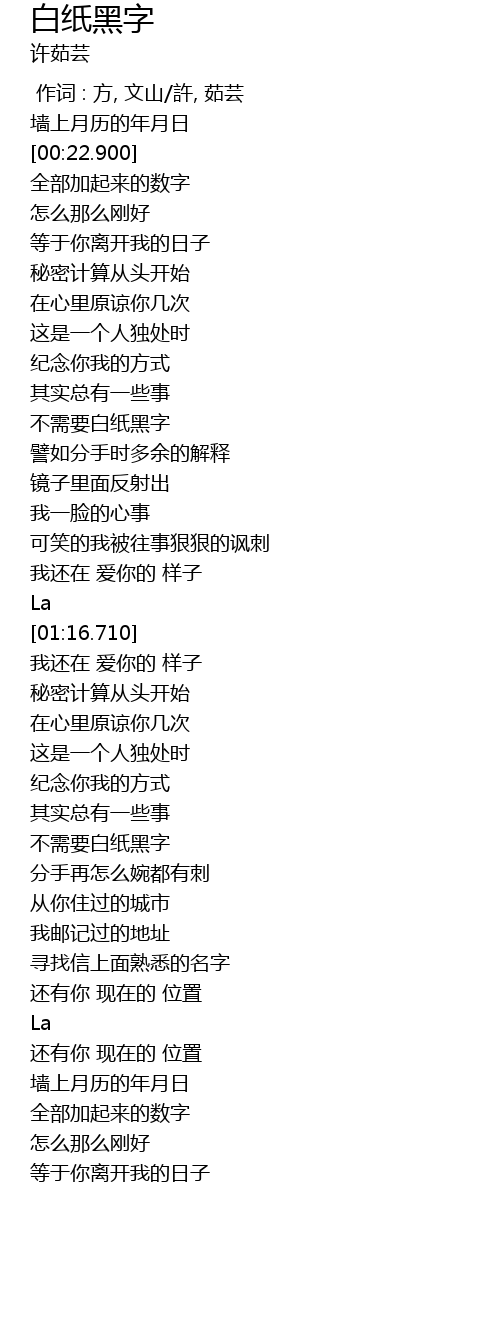 | [00:00.00] | 作词 : 方, 文山/許, 茹芸 |