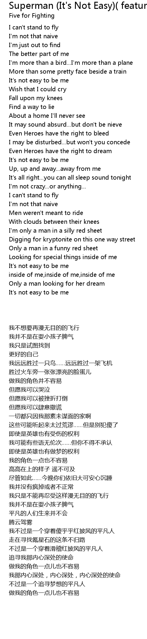 Superman (It's Not Easy)( featuring John Ondrasik) - New Album Version Lyrics