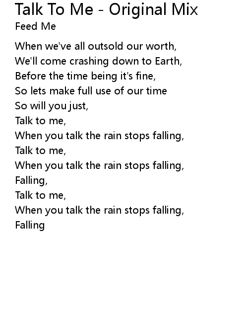 | Talk to me, | |