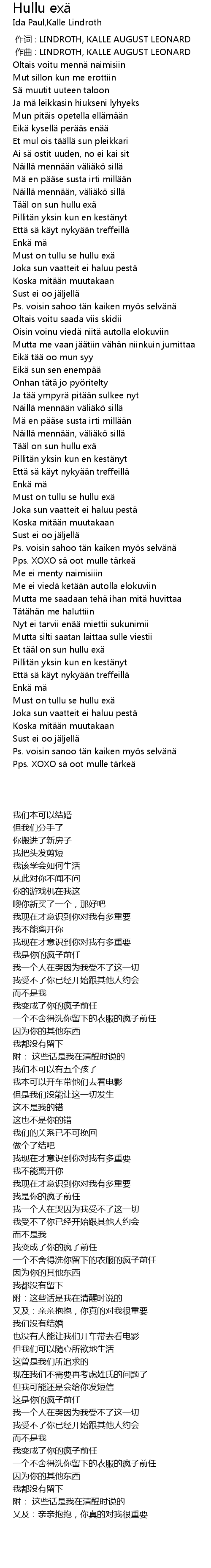 | [02:20.504] | Pps. XOXO sä oot mulle tärkeä |