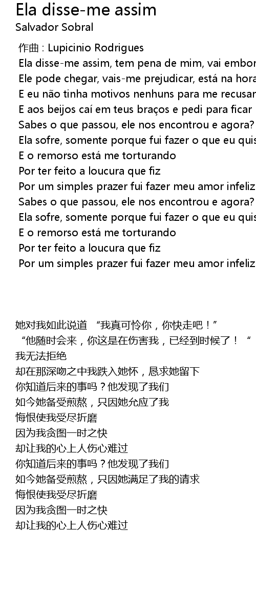 | [00:00.29] | Ela disse-me assim, tem pena de mim, vai embora |