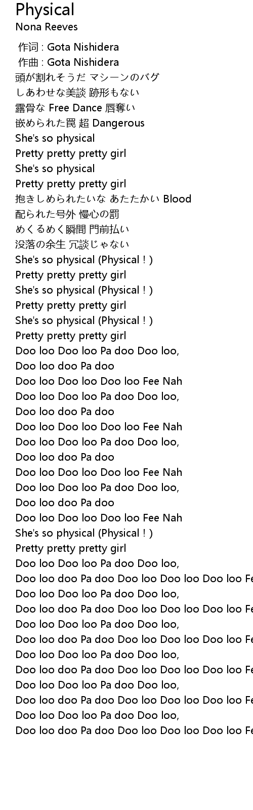 | [2:04.171] | She's so physical (Physical!) |