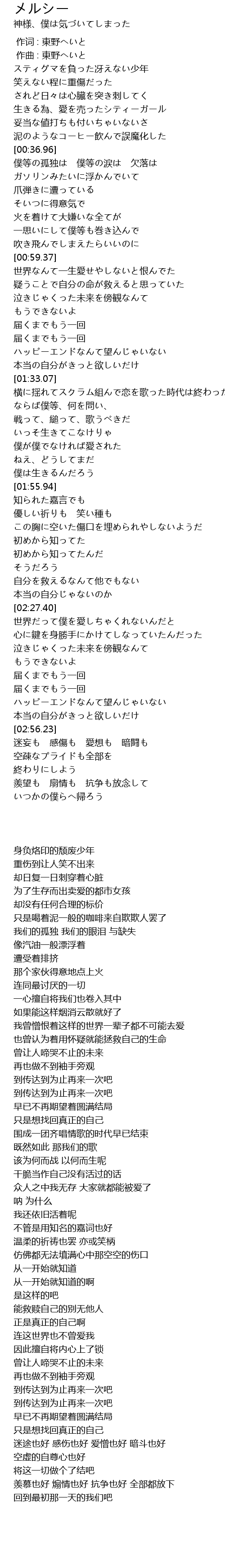 | [02:47.96] | ハッピーエンドなんて望んじゃいない |