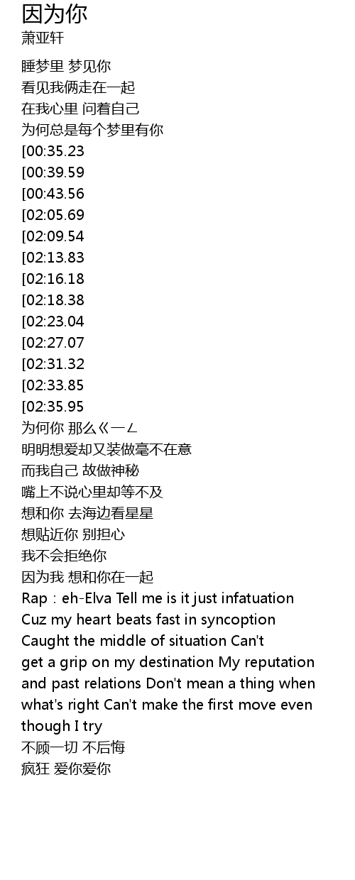 | [03:01.50] | Rap:eh-Elva Tell me is it just infatuation |