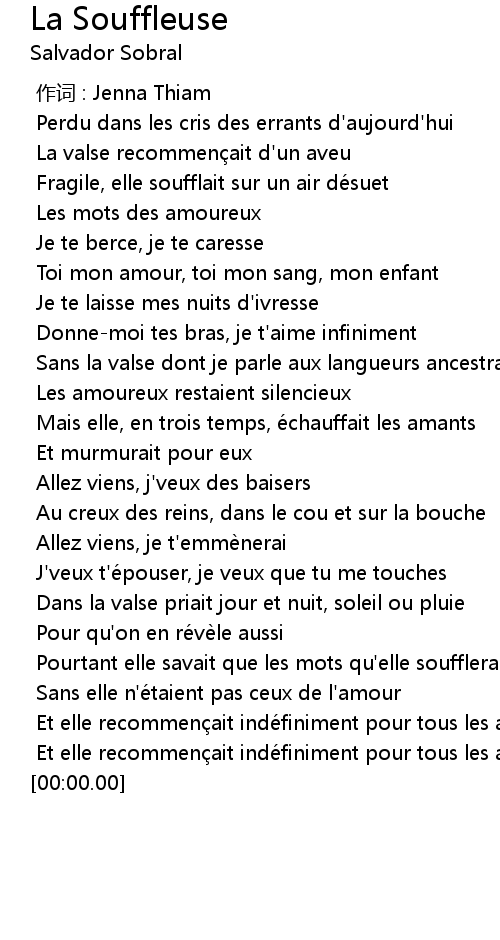 | [02:23.31] | Et elle recommen ait indé finiment pour tous les amants |