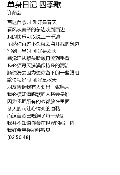 | [00:30.12] | 写这首歌时 刚好是春天 |