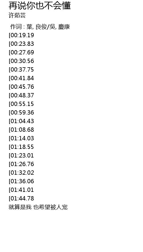 | [02:24.26][00:19.19] | 再说你也不会懂 |