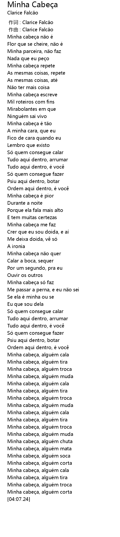 | [00:01.000] | 作曲 : Clarice Falcão |