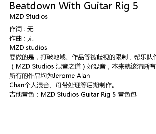 | 吉他音色:MZD Studios Guitar Rig 5 音色包 |