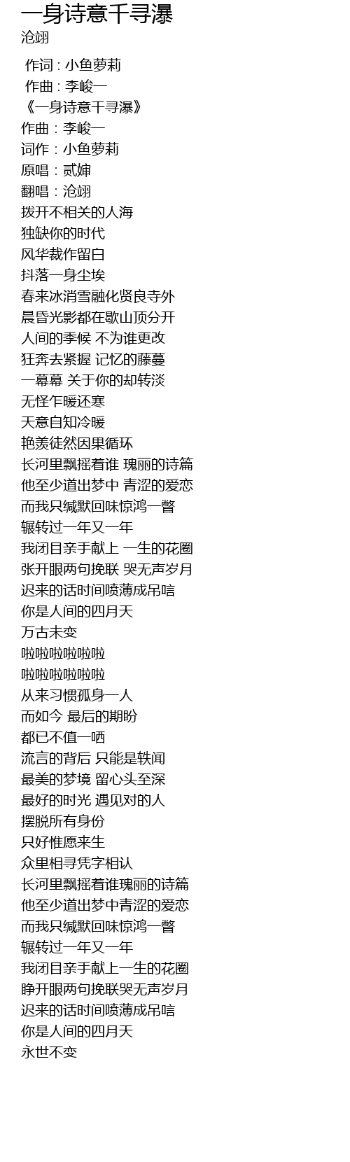 | [00:06.171] | 《一身诗意千寻瀑》 |
