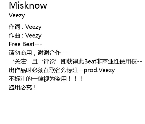 | 出作品时必须在歌名旁标注--prod.Veezy | |