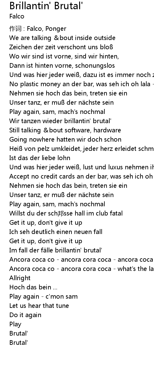 | Ancora coca co - ancora cora coca - what's the last word they said, man ? | |
