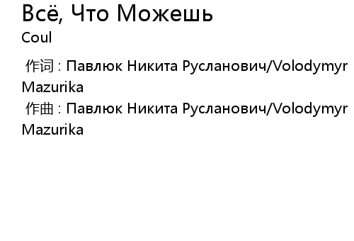 | [00:00.000] | 作词 : Павлюк Никита Русланович/Volodymyr Mazurika |