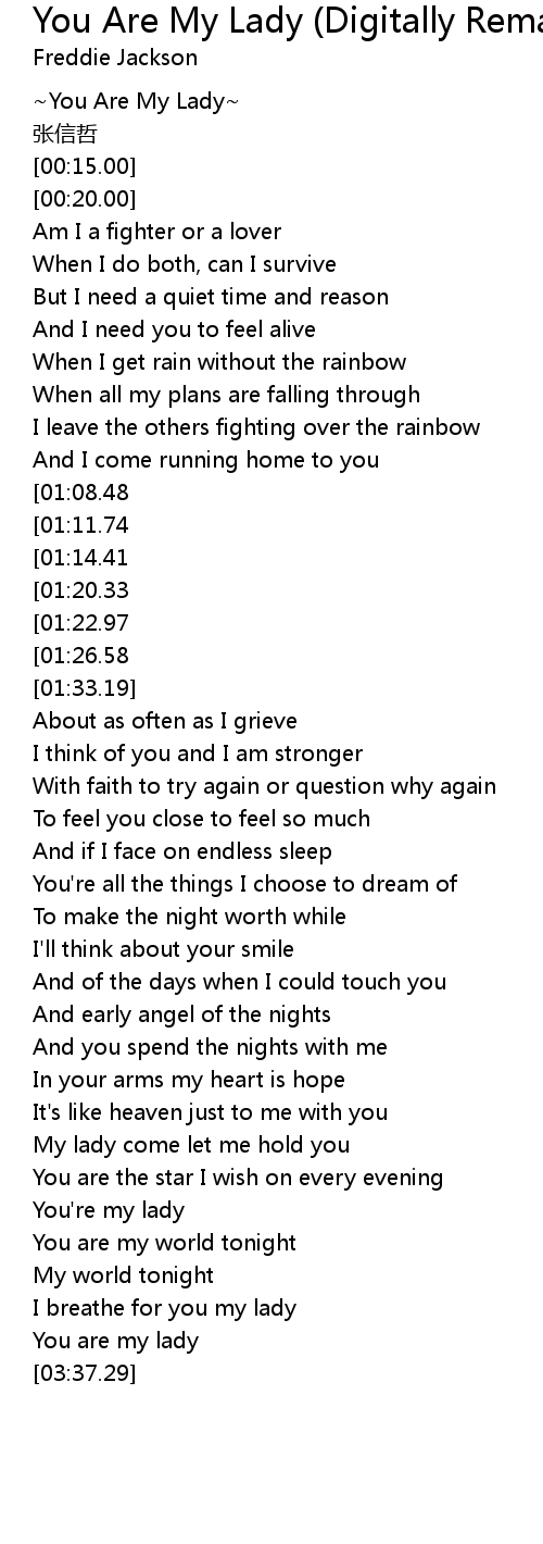 | [02:40.91][01:26.58] | My world tonight my lady |