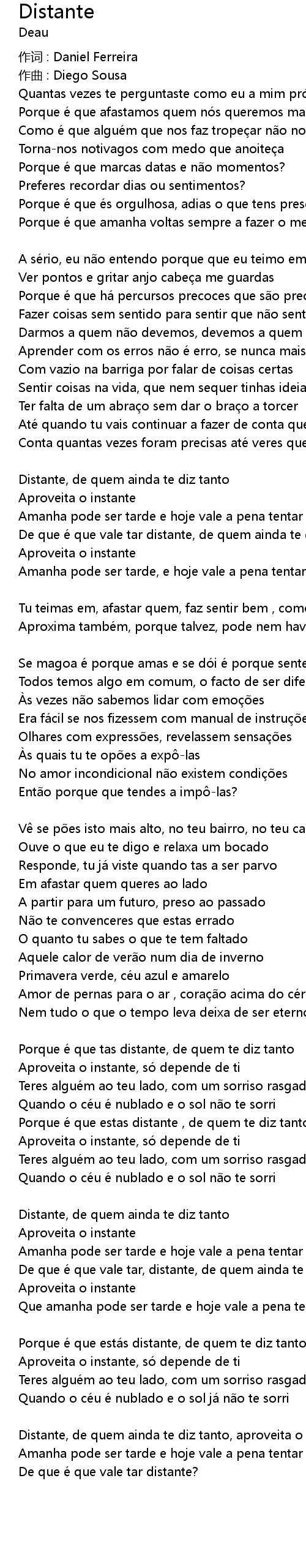 | Porque é que está s distante, de quem te diz tanto | |