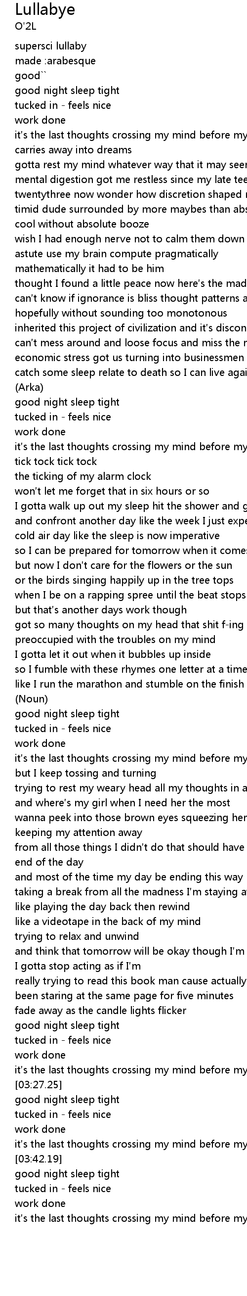 | [02:10.57] | it s the last thoughts crossing my mind before my sleep |