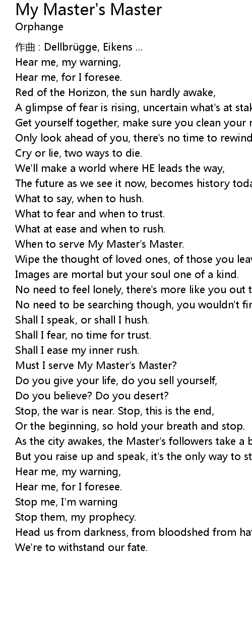 | When to serve My Master' s Master. | |