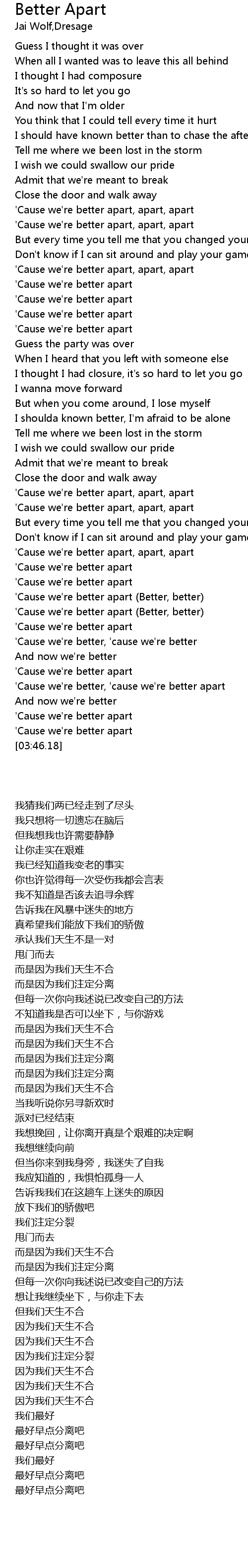 | [02:39.06] | 'Cause we're better apart, apart, apart |
