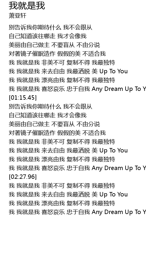 | [02:52.90] | 我 我就是我 漂亮由我 复制不得 我最独特 |
