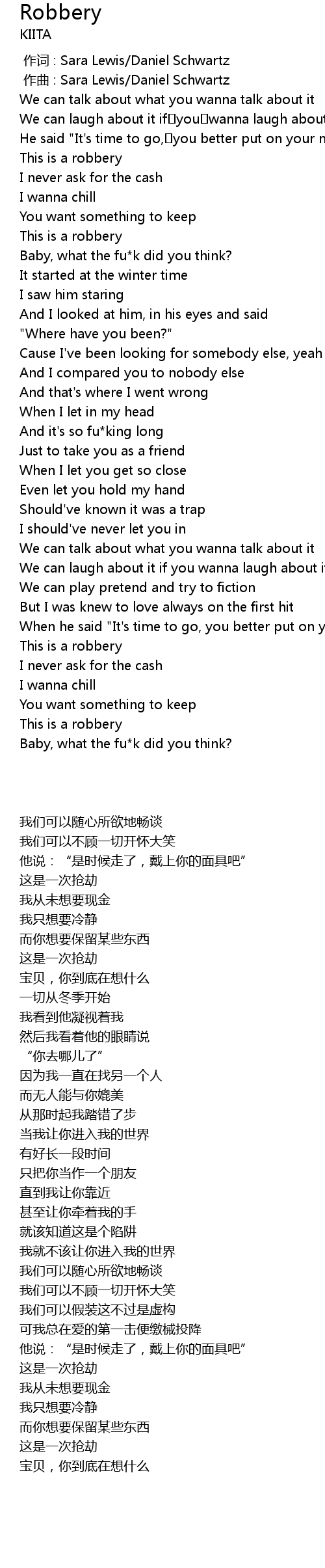| [00:13.31] | This is a robbery |