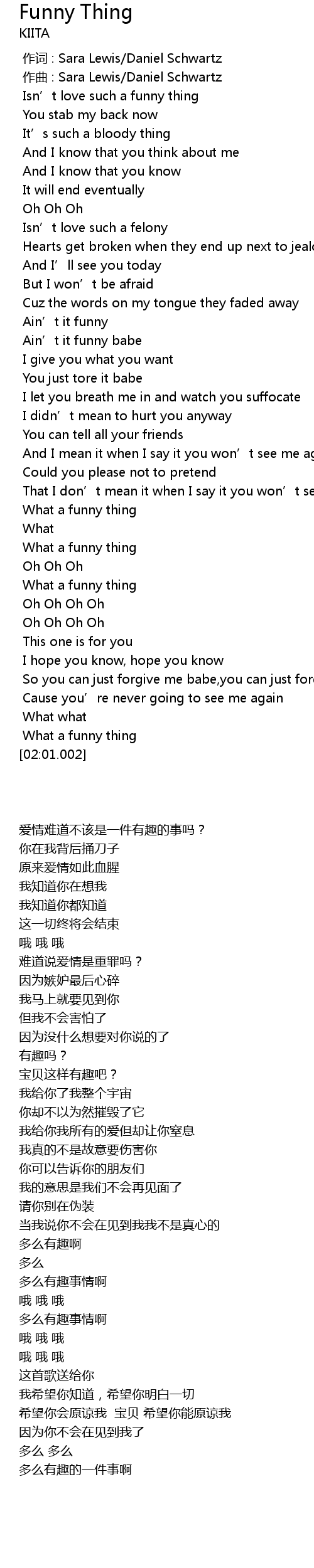 | [00:16.454] | Isn’t love such a funny thing |