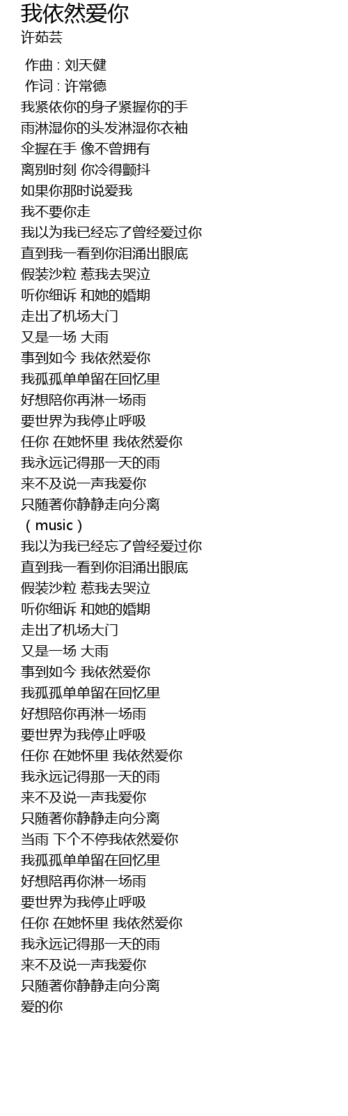| [04:28.000] | 当雨 下个不停我依然爱你 |