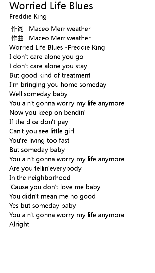 | [00:00.00] | Worried Life Blues -Freddie King |