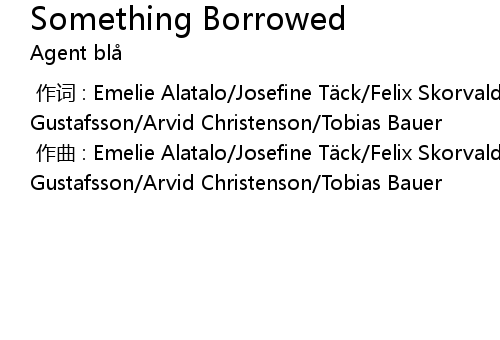 | [00:00.000] | zuo qu : Emelie Alatalo Josefine T ck Felix Skorvald Lucas Gustafsson Arvid Christenson Tobias Bauer |