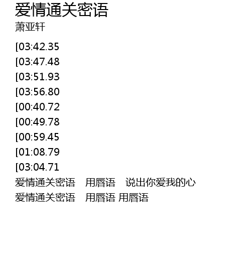 | [03:19.31] | 爱情通关密语 用唇语 用唇语 |