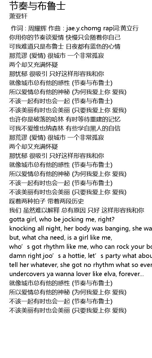 | [01:05.360] | 不该一起有时也会一起 (节奏与布鲁士) |