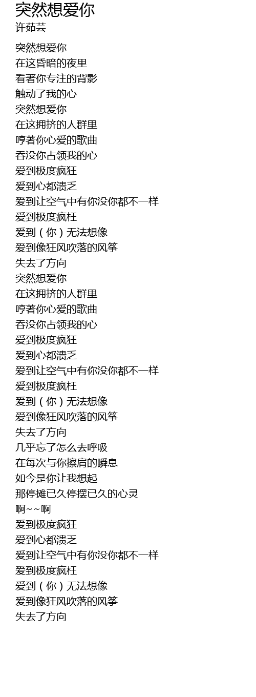 | [00:32.00] | tū rán xiǎng ài nǐ |