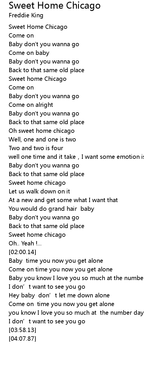 | [01:51.99] | Sweet home chicago |