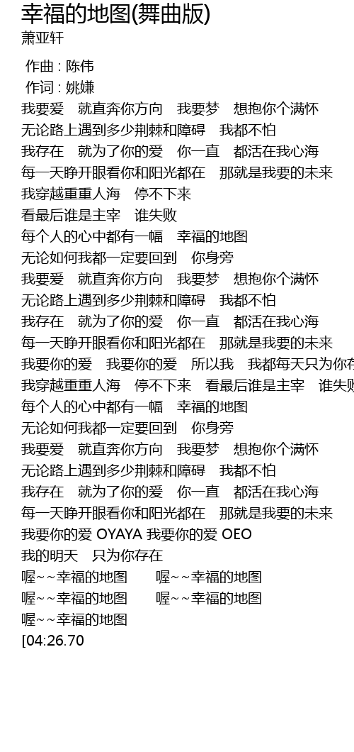 | [04:04.77] | 喔~~幸福的地图 喔~~幸福的地图 |